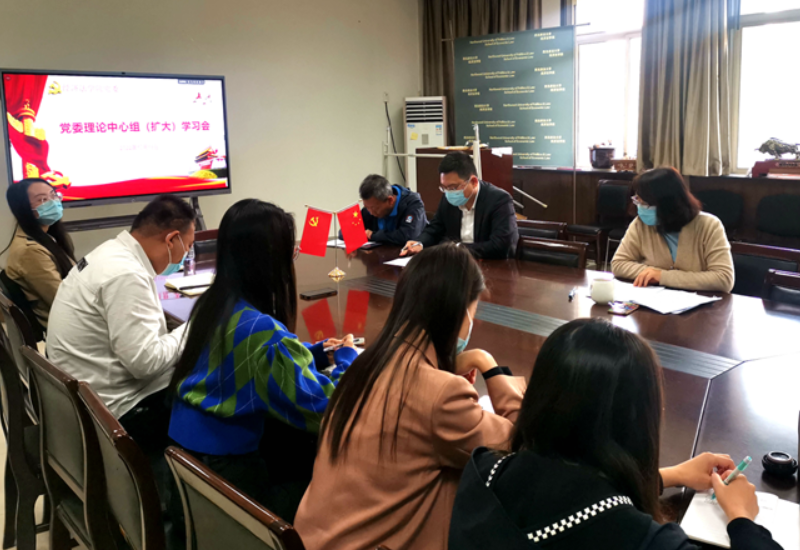10月18日下午,经济法学院在长安校区资料室召开党委理论学习中心组(扩大)会议,专题学习党的二十大精神。会议采取线上线下相结合的方式进行,学院领导班子成员、党支部书记、行政干部及全体辅导员参加。