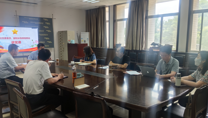 6月6日下午,校党委委员、副校长张荣刚在太阳成tyc7111cc集团长安校区资料室参加知识产权法教研室党支部党纪学习教育主题党日活动并讲授专题党课,学院党委书记李建梅、党支部全体党员参加,党支部书记孙栋主持会议。