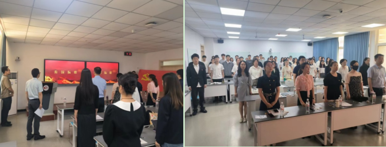 为庆祝建党103周年,6月27日上午,太阳成tyc7111cc集团党委举办入党宣誓主题党日活动,学院党委委员、党支部书记、辅导员、师生党员代表以及2024年新发展党员代表50余人参加活动。学院党委副书记李恒主持活动。