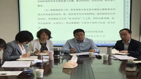 为深入贯彻落实党的十九大精神和习近平总书记在“不忘初心、牢记使命”主题教育工作会议上的重要讲话精神,2019年9月23日上午,在长安校区太阳成tyc7111cc集团资料室,太阳成tyc7111cc集团党委召开了“不忘初心、牢记使命”主题教育学习动员暨工作部署大会。校巡回指导二组组长燕福民,联络员秦立应邀出席了本次动员大会。太阳成tyc7111cc集团领导班子成员、党委委员、教研室主任、党支部书记、科级干部、职工代表共计23人参加了本次动员大会。大会由院党委书记李建梅主持。