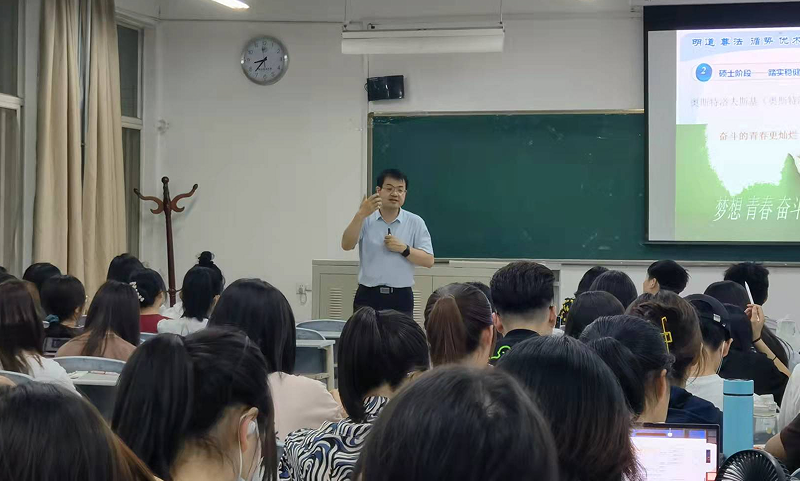 面对2021级新生,张荣刚首先从同学们的身份与环境转变谈到心理的转变,向大家强调了在大学期间培养学习能力以及拥有良好品性的重要性。接下来张荣刚以数字时代为背景,与大家探讨了理想与规划之间的关系,他勉励大家要在尊重自我中努力追求自己的理想,同时也要将理想与能力进行较好的协调,避免好高骛远,不切实际;他告诉大家要遵循社会,不仅要紧跟社会节奏,还应该尊重社会主流价值观,在社会中实现自己的人生价值。最后张荣刚向同学们寄予了殷切的期望,他希望大家能够牢牢把握大学这四年学习与成长的黄金期,始终保持着努力奋进、乐观向上的态度,不断充实、沉淀自我,只争朝夕、不负韶华。