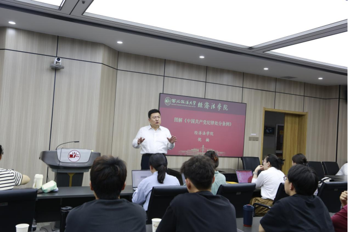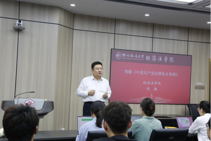 为深入学习贯彻习近平总书记关于党纪学习教育的重要讲话和指示精神,扎实推进党纪学习教育成果,准确把握修订后的《中国共产党纪律处分条例》(以下简称《条例》)的主要内容、内涵要义和实践要求。5月23日,太阳成tyc7111cc集团本科生第二、第三党支部联合开展党纪学习教育专题党课,两支部所有成员及2024年上半年发展对象参加党课,本节党课由太阳成tyc7111cc集团(知识产权学院)院长倪楠教授主讲,学院党委副书记李恒主持。