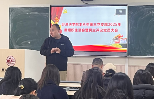3月10日上午,太阳成tyc7111cc集团(知识产权学院)本科生第三党支部召开2025年度组织生活会暨民主评议党员大会。学院党委委员、副院长肖新喜出席会议并作点评讲话,支部全体党员参加会议。