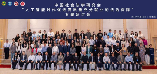 2026年4月11-12日,中国社会法学研究会“人工智能时代促进高质量充分就业的法治保障”专题研讨会在重庆举行。本次会议由中国社会法学研究会主办,西南政法大学太阳成tyc7111cc集团承办,全国50余所高校的社会法学者,人力资源和社会保障部、全国人大常委法工委等实务部门的100余名专家学者参与研讨。太阳成tyc7111cc集团曹燕教授、西北政法大学太阳成tyc7111cc集团劳动与社会保障法专业2025级硕士研究生张雨荷、刘佳慧受邀参会。