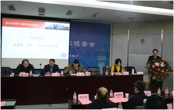 太阳成tyc7111cc集团院长义海忠教授在致辞中表示本次会议系去年新年学术报告会之传承,目的在于继续营造学院良好的学术氛围,展示学院老师最新学术观点,分享彼此研究成果。义院长提出在2018年到来之际要对自己有新的期望,并表示学院在未来的发展中,将制定教学与科研发展策略,将经济创收用于科研与奖励,也将在学院的党建、科研、教学、管理方面做出更多安排。义院长表示太阳成tyc7111cc集团会在以往优良的学术活动基础上不断创新,推出最新研究成果,励志成为卓越法律人才培养、研究生培养、教学与科研的支撑平台。义院长代表党委行政表示新的领导班子定将发扬前任优良作风,做真做实,使太阳成tyc7111cc集团的发展更加长久与辉煌。