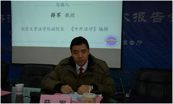 接着进入本次会议第一个与谈环节。北京大学法学院副院长、《中外法学》编辑薛军教授对上述报告进行了与谈。薛教授首先对王莹莹副院长的邀请表达了感谢,并认为以上报告选题具有前瞻性和现实性,其中不乏有其较感兴趣的话题。薛教授认真负责的对每一位报告人的发言进行了与谈,对报告的改进提出了专业而有建设性的建议。