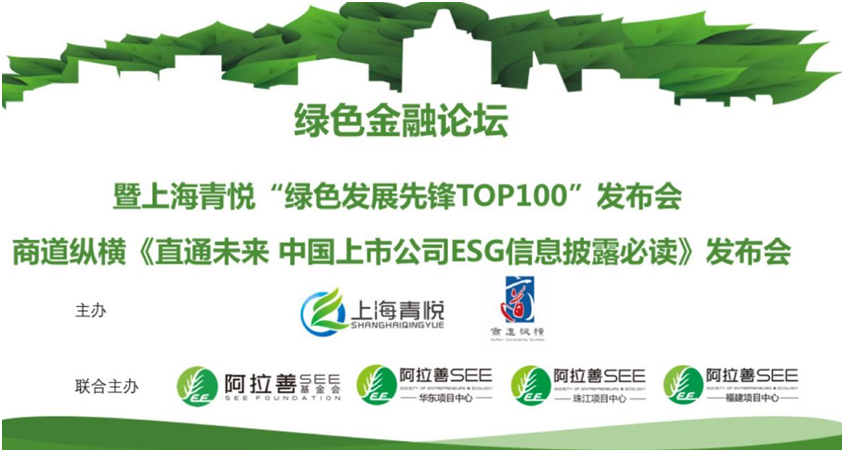 2019年9月20日,上海闵行区青悦环保信息技术服务中心(上海青悦)联合阿拉善SEE基金会,阿拉善SEE华东项目中心,珠江项目中心,福建项目中心在上海浦东陆家嘴举办“绿色发展先锋Top100”-中国上市公司ESG信息披露评价发布会,会上正式发布了对A股和港股市值各前300上市公司的ESG评价结果。