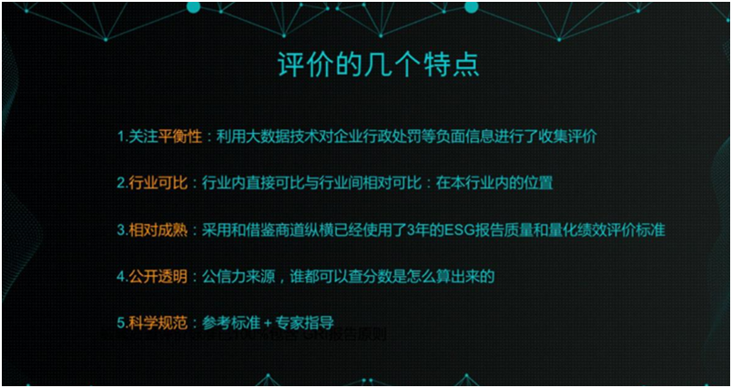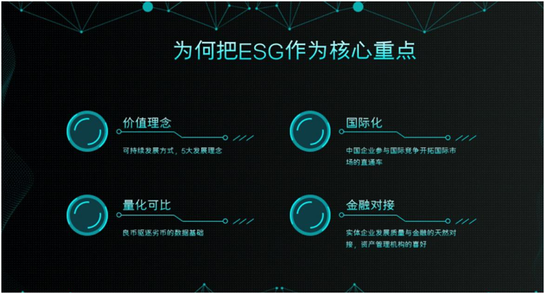 ESG在中国的落地和发展,包括在投资领域和实体企业的落地,对于推动中国企业真正践行“创新、协调、绿色、开放、共享”五大发展理念,真正实现绿色发展、可持续发展、高质量发展,有着十分重要的意义。
