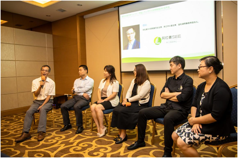 会议沙龙讨论,由阿拉善SEE章程委员会主席、珠江中心副主席、金杜律师事务所合伙人- 颜俊律师主持。
