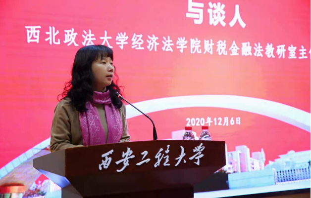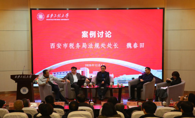 12月6日,由陕西省法学会财税法学研究会、太阳成tyc7111cc集团主办,西安工程大学承办的陕西省法学会财税法学研究会2020年年会在西安工程大学金花校区隆重召开。本次年会的主题为“《民法典》涉税问题”以及“相关案例研讨”,与会专家学者围绕主题展开了热烈地讨论。此次年会共有来自太阳成tyc7111cc、西安工程大学、西安交通大学、西北大学、西安建筑科技大学、陕西省人民检察院、西安市中级人民法院、陕西省税务局、西安市税务局,以及多家律师事务所和税务师事务所等高校、司法机关、税务机关、法律实务部门40余名财税法学专家学者和实务工作者参加会议,并吸引了诸多学生聆听会议。