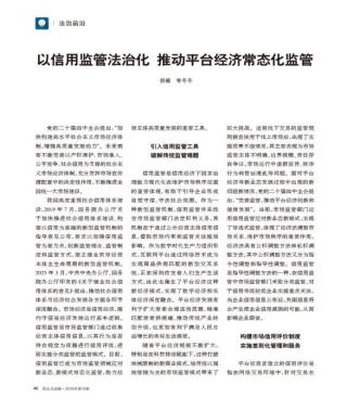 1.C1类,CLSCI:倪楠教授、李冬冬老师:《以信用监管法治化推动平台经济常态化监管》,载《民主与法制》周刊2026年第10期。