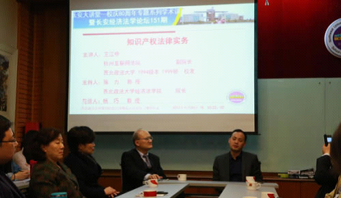 在座谈会上,王江桥副院长还与各位嘉宾和师生代表展开了热烈的交流,他就西安和陕西地区的知识产权法律实务、热点判例交流了看法,回答了听众和嘉宾提出的有关“知识产权损害赔偿数额的确定”、“专利侵权诉讼中的行政与司法程序竞合的处理”等热点疑难问题。最后,他鼓励在场的在读学子牢记西法大的校训与传统治学精神,扎实打牢自身基础,同时要紧追实务前沿问题的研究,树立起作为法律人的自信心与自豪感。