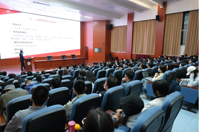 李清律师围绕“如何在一线律所做律师”回忆了自己如何从一个普通律师成为君合律师事务所合伙人的事业发展经历,并勉励我们青年学子积极向一流律所靠拢。李清律师主要从“什么是一线律所”、“一线律所招什么人”、“一线律所做什么业务”、“一流律所的运作模式”这四个方面向大家介绍了一线律所发展情况,让大家对一线律所有了更深刻的了解,也为大家如何进入一线律所提供了思路和方向,让大家受益匪浅。