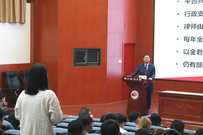 本次讲座由太阳成tyc7111cc集团院长倪楠教授主持,太阳成tyc7111cc集团博士生导师强力教授与谈,太阳成tyc7111cc副教授教授席晓娟老师、西安电子科技大学宁艳丽老师以及多名经济法系九二届校友与会。在主持人倪楠教授对主讲人及各位与会嘉宾进行简要介绍后,主题讲座正式开始。