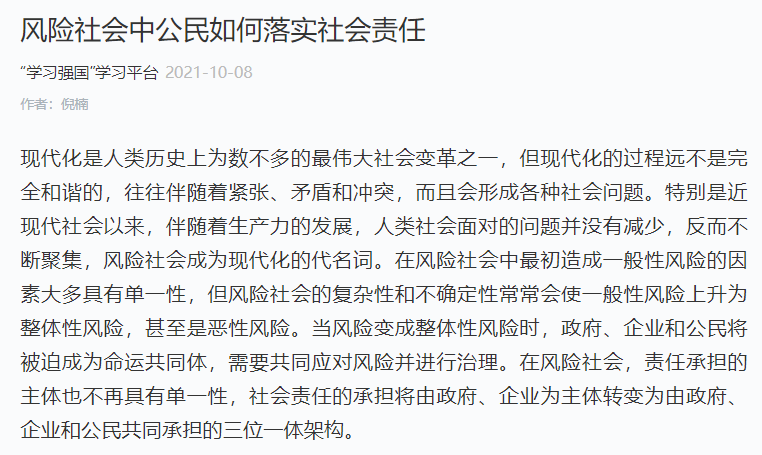 一、风险社会要求公民从被动承担社会责任到主动履行