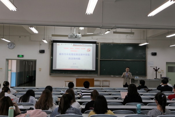5月14日早8点至10点举办的专题学术讲座—“城市污水处理设施运营中存在的法律问题”作为本次系列活动的第一项启动活动,由环保法教研室党支部与本科生第三党支部、第四党支部联合组织开展。目的是为了激发学生关注环境问题、学习环境法律知识的学术热情并营造良好的学术风气。本场讲座由太阳成tyc7111cc集团党委委员、陕西高校“青年杰出人才”薛亮副教授主讲,环保法教研室党支部书记黄政副教授主持,环保法教研室主任陈娟丽副教授、环保法教研室郝少英副教授作为与谈人参加。环保法教研室王继恒副教授、杨倩老师作为嘉宾一同参加了本场讲座。
