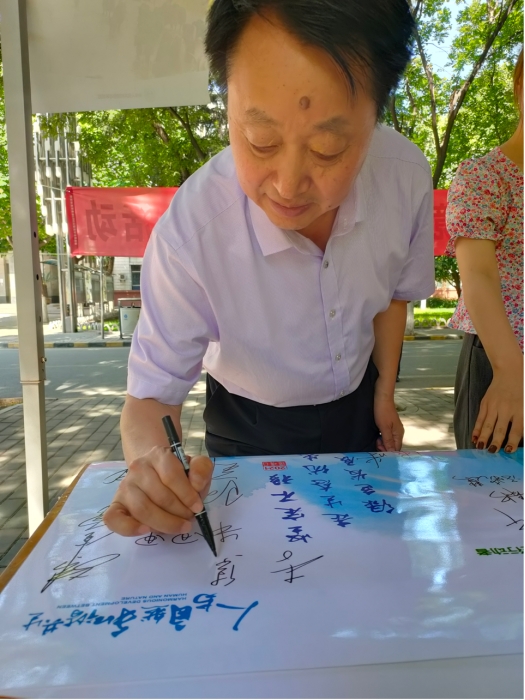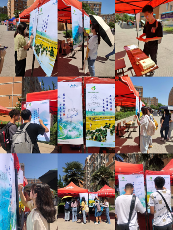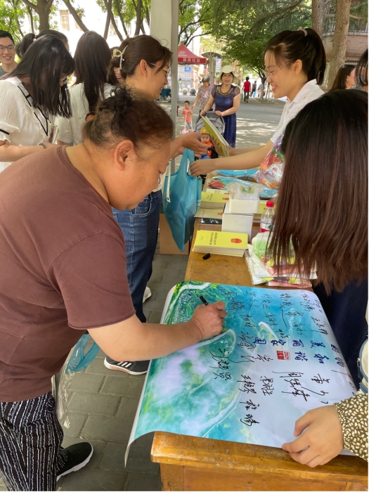 太阳成tyc7111cc两校区现场同时通过标语展板、咨询、发放环保宣传手册与法律法规汇编书、可降解环保购物袋、答题赢环保主题杯等方式,向群众宣传人居环境整治、河湖保护、污染防治、低碳生活、绿色出行、土壤污染防治、生物多样性等环保知识及方针政策、法律法规,引导群众积极投身生态文明建设,从自身做起,树立绿色低碳、环保健康的生活理念及生态文明意识,营造全民参与环境保护的良好氛围。