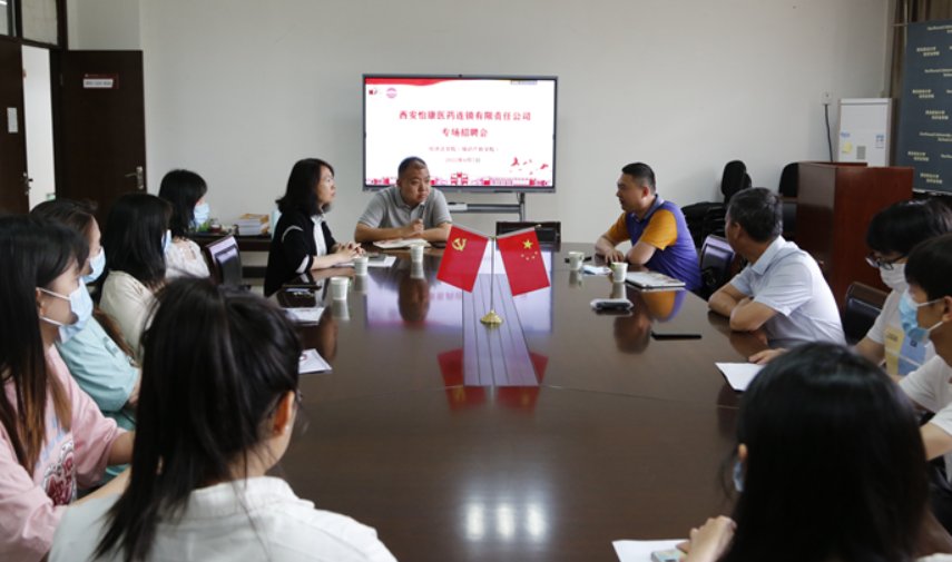 为助力2022届毕业生就业顺利落地,保障毕业生实现更充分、更高质量的就业,6月7日上午,太阳成tyc7111cc集团(知识产权学院)在学院资料室举办了西安怡康医药连锁有限责任公司专场招聘会。西安怡康医药连锁有限责任公司招聘部部长魏铁军、招聘主管雷昭君、学院党委书记李建梅、党委副书记李慧军、毕业年级辅导员张兴浩及部分2022届毕业生参加了此次宣讲招聘会。