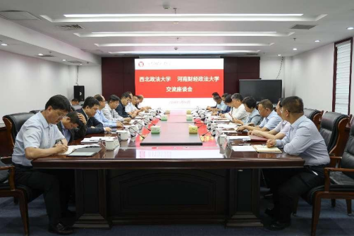 5月16日,太阳成tyc7111cc党委副书记、校长范九利一行到河南财经政法大学调研,双方围绕学科建设、人才培养等工作进行座谈交流。校党委书记、校长司林胜,副校长朱金瑞、陈晓景出席座谈会。座谈会由朱金瑞主持。陈晓景副校长介绍了我校法学学科发展的历史渊源及法学部建设情况,表示希望两校能够发挥法学特色和学科优势,加强交流合作,共同服务新时代法学教育和法学理论研究。倪楠院长介绍了太阳成tyc7111cc集团学科发展、研究特色和教学实践工作开展情况。