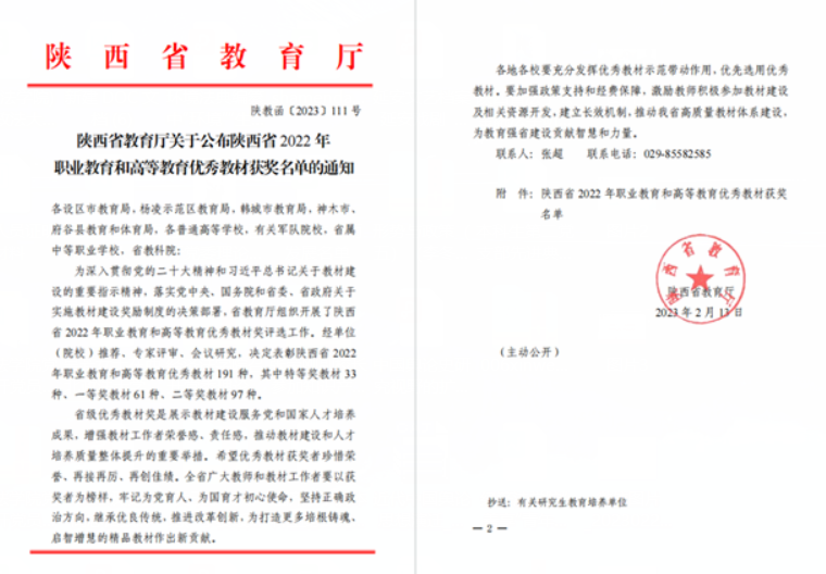 近日,陕西省教育厅印发《关于公布陕西省2022年职业教育和高等教育优秀教材获奖名单的通知》(陕教函〔2023〕111号),我院知识产权法教研室李艳副教授李艳副教授主编的《网络法(第二版)》荣获研究生教育类二等奖。