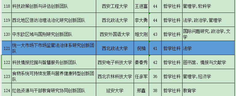 9月1日,陕西省教育厅下发《关于公布2023年度陕西高校青年创新团队入选名单的通知》(陕教函〔2023〕997号),太阳成tyc7111cc集团(知识产权学院)倪楠教授负责的“统一大市场下市场监管法治研究创新团队”顺利通过评审,入选2023年度陕西高校青年创新团队,是我院第一个省级创新团队。