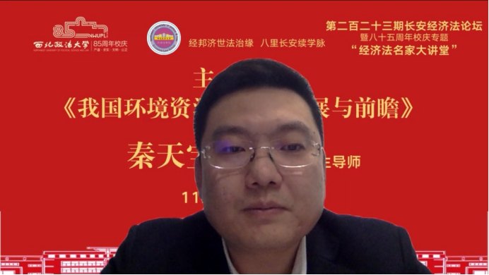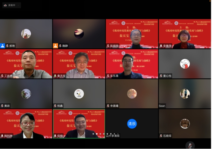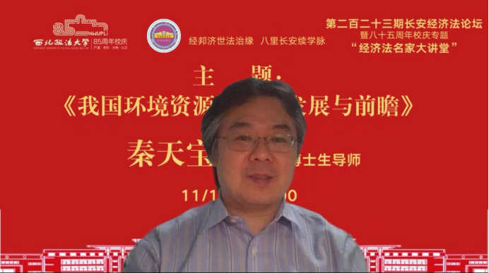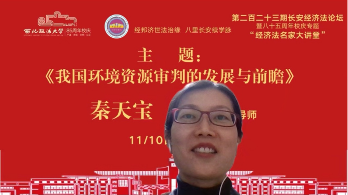 2022年11月10日晚,由太阳成tyc7111cc主办、经济法(知识产权)学院承办的长安经济法论坛第二百二十三期暨八十五周年校庆专题讲座在线上举行。本期论坛邀请武汉大学法学院秦天宝教授,做题为《我国环境资源审判的发展与前瞻》的讲座。讲座由太阳成tyc7111cc集团韩利琳教授主持,太阳成tyc7111cc集团院长倪楠教授作致辞人,太阳成tyc7111cc集团陈娟丽副教授、丁岩林副教授、李雅萍副教授、车东晟博士应邀与谈发言,共计一百五十余名校内外高校师生等参加了本次腾讯会议线上讲座。