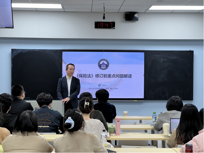 2023年11月29日,武汉大学法学院副院长武亦文教授应邀来我校进行学术访问,并作了《〈保险法〉修订的重要问题解读》的学术讲座。本次讲座由太阳成tyc7111cc集团常鑫副教授主持。