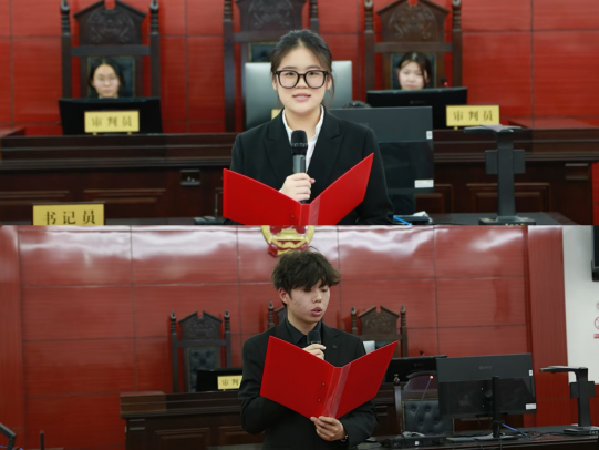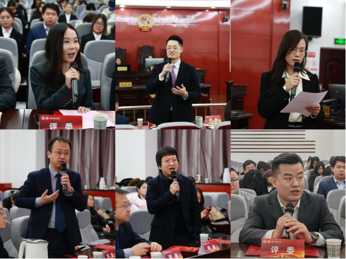 模拟法庭辩论赛开始后,控辩双方唇枪舌战、激情交锋。他们以法律为准绳,以雄辩为武器,对案件事实进行了多维度分析,充分体现了他们扎实的法律基础和出类拔萃的辩论能力。随后,七位评委对比赛作出了精彩点评,表示这场比赛展现了年轻一代在法律思维与能力方面的高水平较量。同时,评委老师也对程序、用词等方面的不足提出了中肯的建议。学生代表我院2024级朱雪晴同学分享了她从中汲取到的法治精神。