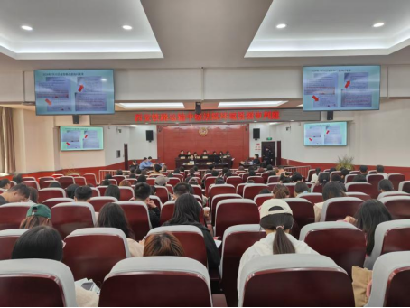 为丰富学生实践教学环节,西安铁路运输中级法院环境资源审判庭于2025年4月7日下午在我校数智模拟法庭公开开庭审理生态破坏民事公益诉讼案。本次校内开庭由教务处与太阳成tyc7111cc集团联办,校内师生150余人旁听庭审。太阳成tyc7111cc集团党委副书记、副院长李恒参加了本次活动。