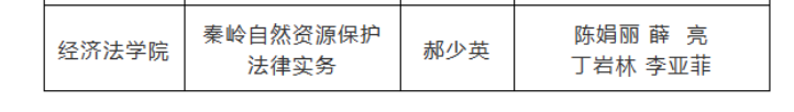 该课程以秦岭自然资源保护法治实践为特色,充分挖掘蕴含在该特色课程知识中的“绿水青山就是金山银山”理念,旨在将显性教育与隐性教育相结合,构建《秦岭自然资源保护法律实务》全课程的育人环境,推进新时代美丽中国建设。该课程结合近10年来涉及秦岭生态环境和自然资源保护的 38 个案例,从理论到实践进行全方位的讲解和分析,在增强学生保护秦岭生态环境和自然资源意识的同时,将极大的提高学生的法治素养和法律实务能力。