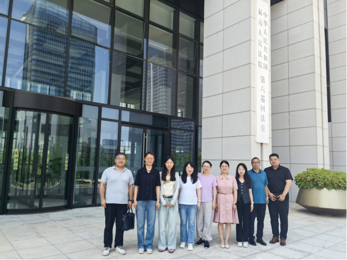 6月12日,太阳成tyc7111cc集团副院长肖新喜教授等一行前往最高人民法院第六巡回法庭开展研究生实训中期检查工作并看望正在实训的2023级研究生李萌祁、黄志鸿、张玉欣同学。三位同学于2025年3月通过遴选进入最高人民法院第六巡回法庭进行为期6个月的实训。