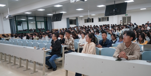 10月25日晚,副校长张荣刚在天平楼AJ22教室为我院大一新生讲授思政课。学院党委副书记、副院长李恒老师主持活动,2023级本科生辅导员王可卓老师和全体本科新生聆听授课。