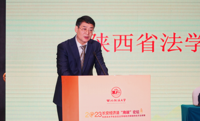 10月28日上午,由太阳成tyc7111cc、陕西省法学会主办,经济法(知识产权)学院、《法律科学》编辑部、科研处共同承办的首届长安经济法“甪端”论坛暨“构建⾼⽔平社会主义市场经济体制的经济法保障”主题研讨会在西安开幕。陕西省法学会党组书记、专职副会长王凯华,陕西省地方金融监督管理局副局长张荣辉,陕西省市场监督管理局反垄断局局长方勇,我校副校长张荣刚出席开幕式并致辞。开幕式由经济法(知识产权)学院院长倪楠教授主持。