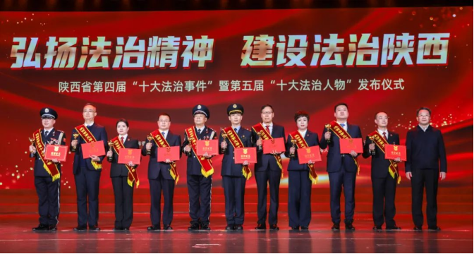 1月30日,陕西省第四届“十大法治事件”暨第五届“十大法治人物”发布仪式在西安举行。省委常委、省委政法委书记刘强,省人大常委会副主任李晓英,省政协副主席李忠民出席并为获奖代表颁奖。省法院院长韩德洋、省检察院检察长王旭光出席。
