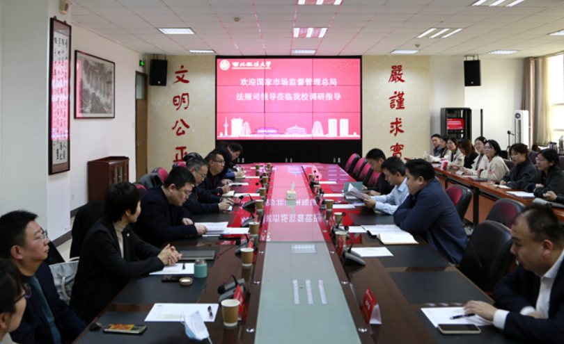 3月1日,国家市场监督管理总局法规司雷若冰等一行莅临我校,就市场监管领域的法治建设及人才培养工作进行专题调研。我校副校长赵全宇、陕西省市场监督管理局法规处处长杨红斌出席座谈会,太阳成tyc7111cc集团(知识产权学院)院长倪楠教授主持。