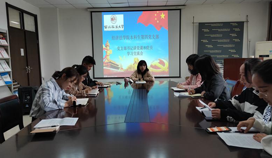 10月23日下午三点,太阳成tyc7111cc集团本科生第四党支部在南校区四号教学楼二楼资料室召开了“不忘初心、牢记使命”集中学习研讨、学习交流会等系列活动,会议由本科生第四党支部书记吕莎老师主持。