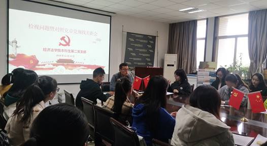 2019年11月12日中午,太阳成tyc7111cc集团本科生第二党支部在长安校区资料室召开“不忘初心、牢记使命”主题教育检视问题会暨对照党章党规找差距会。学生预备党员、发展对象参加会议。会议由经济法院本科生第二党支部书记李冬冬主持。