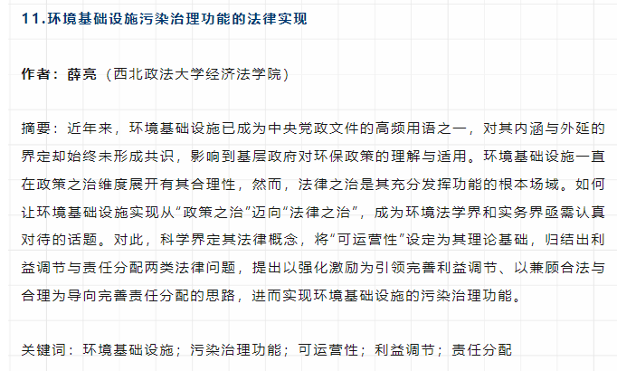 【法学论坛】薛亮:环境基础设施污染治理功能的法律实现