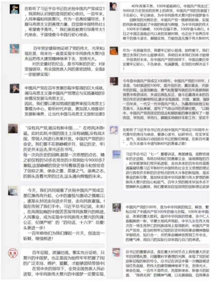 通过本次交流学习,支部的各位成员收获颇丰。大家学习到,一百年前,在苦难深重的中国,中国共产党诞生了,100年的风雨历程,100年的光辉灿烂,使我们的党成为中国先进的工人阶级的先锋队,同时是中国人民和中华民族的先锋队;同时也领悟到,作为一名预备党员,自己要牢记初心易得,始终难守;认识到百年党史雄辩地证明了党的伟大、光荣和正确,深刻昭示我们战胜挑战、赢得胜利的关键在党,中国共产党过去是、现在是、将来也一直是实现中华民族伟大复兴的根本保证;更加感悟到,中国共产党在百年发展历程中取得的巨大成就,从国家发展的角度看,意味着中国共产党面临着更大的挑战和责任,因此,我们要以更加宽阔的眼界审视马克思主义在当代发展的现实基础和实践需要,不断开辟21世纪马克思主义发展新境界,让当代中国马克思主义放射出更加灿烂的真理光芒。